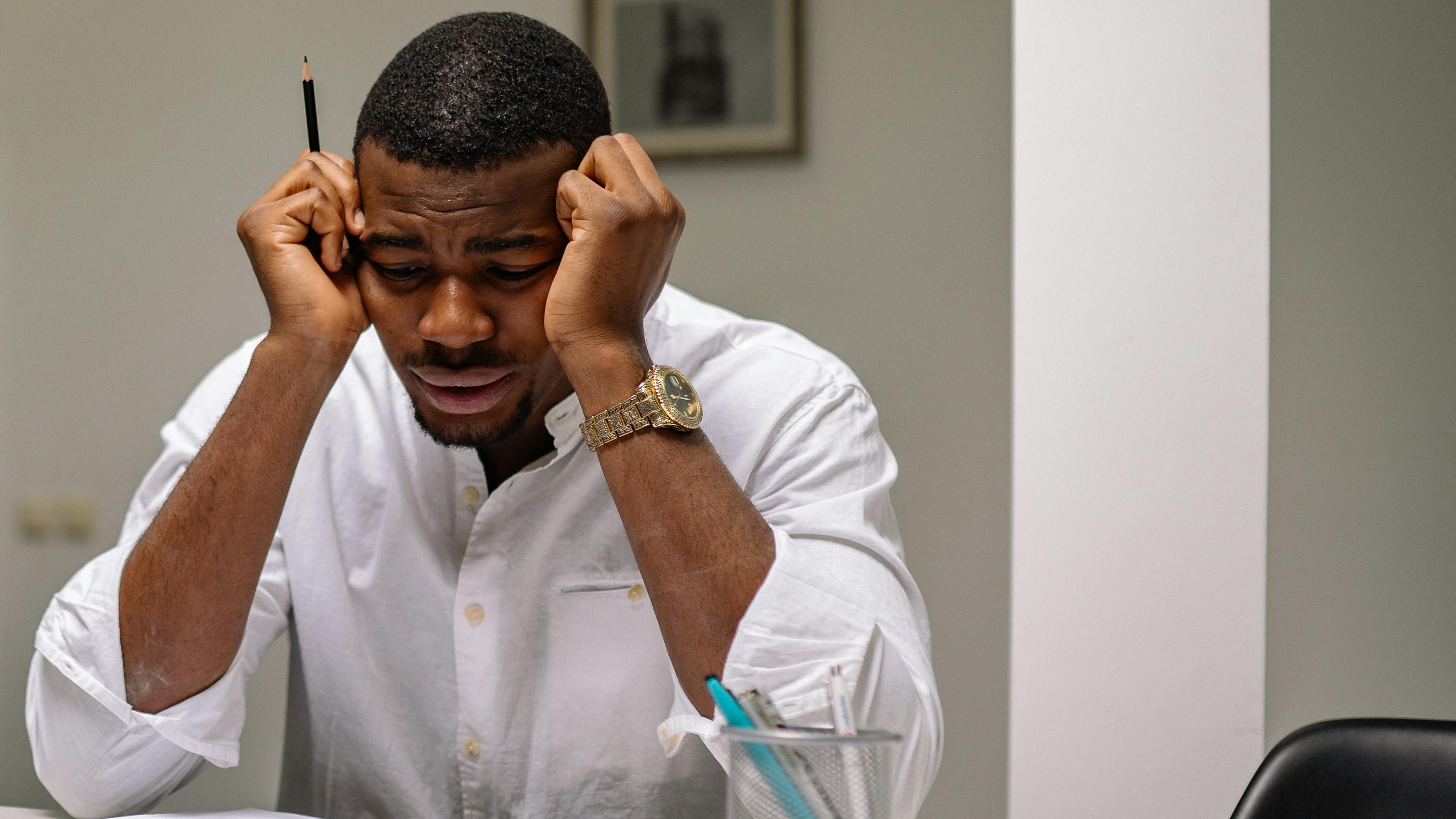 He thinks to himself and ranks his anxiety as an 8 out of 10.